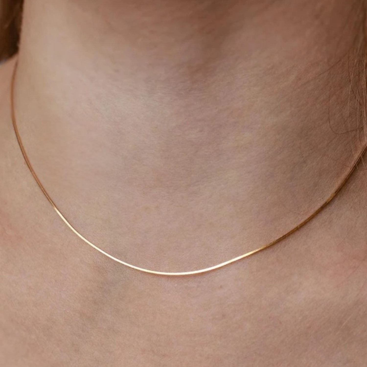 A luminous layer that feels like pure sunshine. This tiny snake chain necklace glides smoothly against your skin — sleek, fluid, and impossibly bright. Adjustable to your perfect fit, it’s a timeless gold essential that brings effortless radiance to every look.