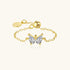 A delicate butterfly comes to life in light. Two pear-cut stones meet in polished gold, forming softly sculpted wings that rest on a fine adjustable chain ring. Fluid and graceful, the design moves with the hand, revealing a gentle glow that feels light, feminine, and free.