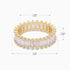 A ring of golden light where neatly aligned baguette stones shimmer in a perfect eternity. Each facet catches the warm glow and reflects it in a continuous ribbon of brilliance. Its radiant symmetry creates a refined sparkle that elevates everyday elegance and special moments alike.