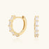 Golden hoops, endless shimmer. Luxury huggie hoops feature baguette-cut gemstones along the semi-circle, hugging the earlobe comfortably. Their polished gold surface reflects light brilliantly, creating a radiant, modern finish - perfect solo or layered for effortless elegance.
