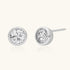 Cool brilliance, impeccably framed. Sleek silver bezel-set studs hold a sparkling solitaire, catching light with crisp, luminous clarity. Modern, polished, and subtly striking, these halo earrings add refined, everyday elegance or layered editorial flair.