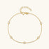 Golden glow with five diamonds. Lined with five bezel-set gemstones along a delicate chain, each sparkles with every gesture. Adds subtle sparkle, modern elegance, and versatile charm for dainty bracelet and diamond station jewelry lovers. Sleek and luminous, perfect for stacking or solo wear.