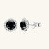 Floral radiance. These halo studs feature a black Moissanite center surrounded by iced mini Moissanites, creating a luminous flower at your ear. Sparkling and versatile, they elevate everyday outfits and make a luxurious, unforgettable gift for someone special.
