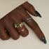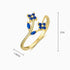 Electric blue brilliance steals the spotlight. Sapphire-toned blossoms bloom against luminous gold, framed by a softly curved open band that hugs the finger with effortless flow. Marquise stones trail like a golden vine, creating depth, glow, and an exquisite floral ring made for you.