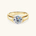 A luminous take on modern luxury. This gold band ring highlights a 2ct round moissanite that glows with rich, refined fire. The warm metal deepens its radiance, creating a timeless solitaire that feels elevated and effortlessly elegant alone or stacked.