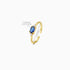 Born to sparkle. A deep blue oval gemstone takes center stage, flanked by two sparkling round diamonds that trace the open gold band. This gorgeous ring blends vivid color with brilliant sparkle, exuding modern sophistication and luminous charm that elevates every gesture.