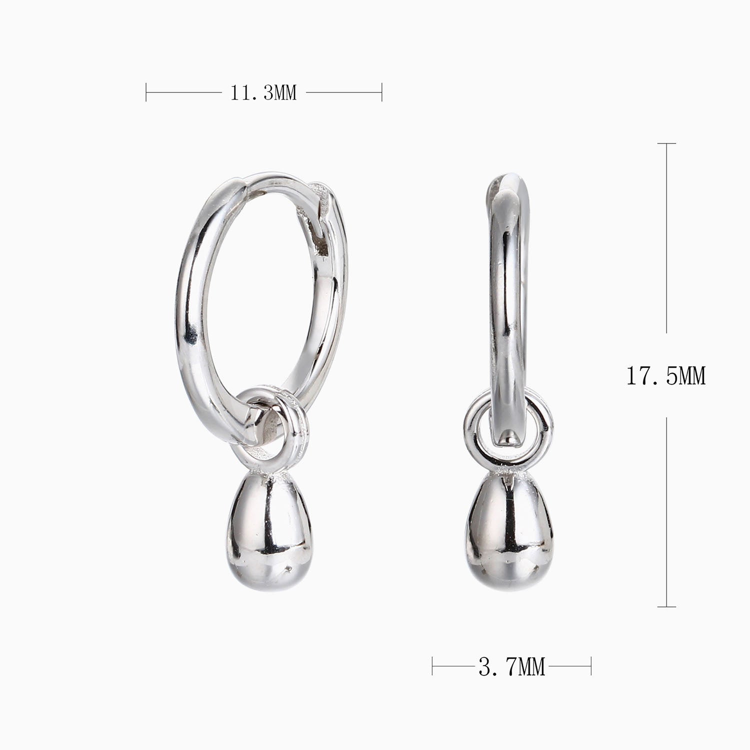 A drop of cool clarity. These modern huggie hoops feature a polished waterdrop charm that glimmers softly as it moves, echoing the fluid grace of falling light. Clean, modern, and subtly poetic, these sleek silver drop earrings add refined ease to daily styling—simple, luminous, and timelessly serene.