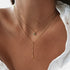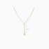 Rosary-inspired Y necklace. A delicate Y-shaped necklace features polished beads along the chain and a refined cross charm at the drop. Elegant, meaningful, and subtly radiant, this gold necklace adds a touch of devotion and sophistication to your look, making it a thoughtful gift or a cherished personal piece.