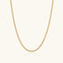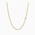 A ultra thin gold curb chain that glows with soft, fluid warmth. Offered in two lengths, it drapes smoothly along the neckline with a polished, lightweight shimmer. Timeless, modern, and effortlessly versatile, perfect worn alone or layered for a touch of everyday golden elegance.