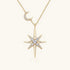 Crescent Moon and North Star Moissanite Necklace - Gold