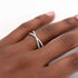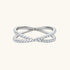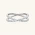 Cool elegance refined. This silver crossover ring curves in clean, fluid lines, while two rows of mini moissanites adds crisp, icy brilliance. Modern, luminous, and quietly sophisticated, it brings effortless polish to everyday wear or meaningful gifting.