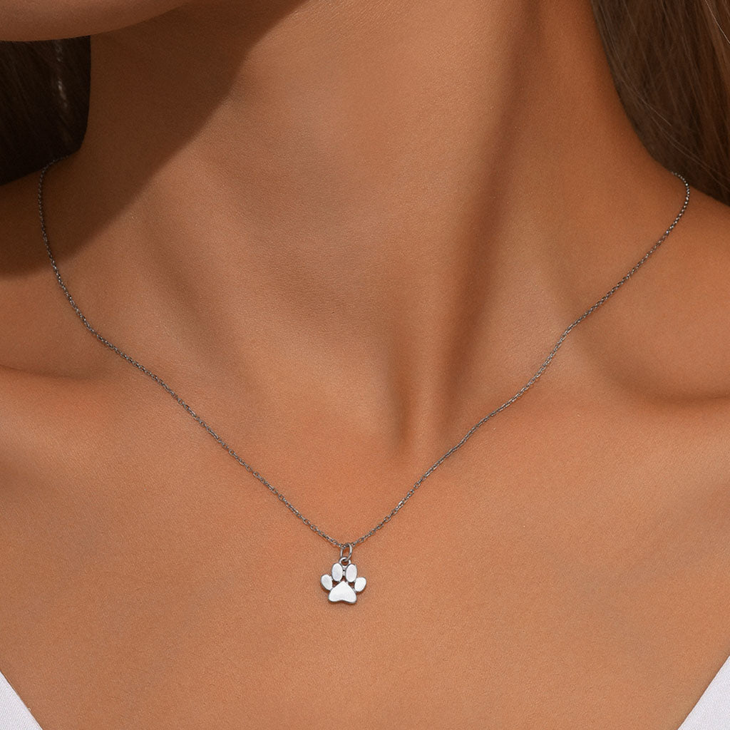 Playful charm. A cute dog paw charm dangles from a polished silver cable chain, capturing warmth and affection. Whimsical yet refined, it celebrates the joy of companionship and makes a heartfelt gift for dog lovers or a charming everyday accessory.