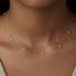 Soft glimmers along a golden line. Delicate glass pearls are spaced gracefully across a slim gold cable chain, creating a refined rhythm of light and elegance. This station necklace brings a touch of modern femininity to any look and makes a thoughtful gift for someone special or a timeless treat for yourself.