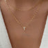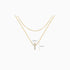Two streams of golden light intertwined. This layered necklace pairs a luminous lumachina chain with another centered by a pavé cross that glows with quiet radiance. Elegant, modern, and full of gentle meaning, it adds a warm shimmer perfect for daily style or layered looks.