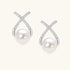 Diamond Crossover Freshwater Pearl Stud Earrings - Silver