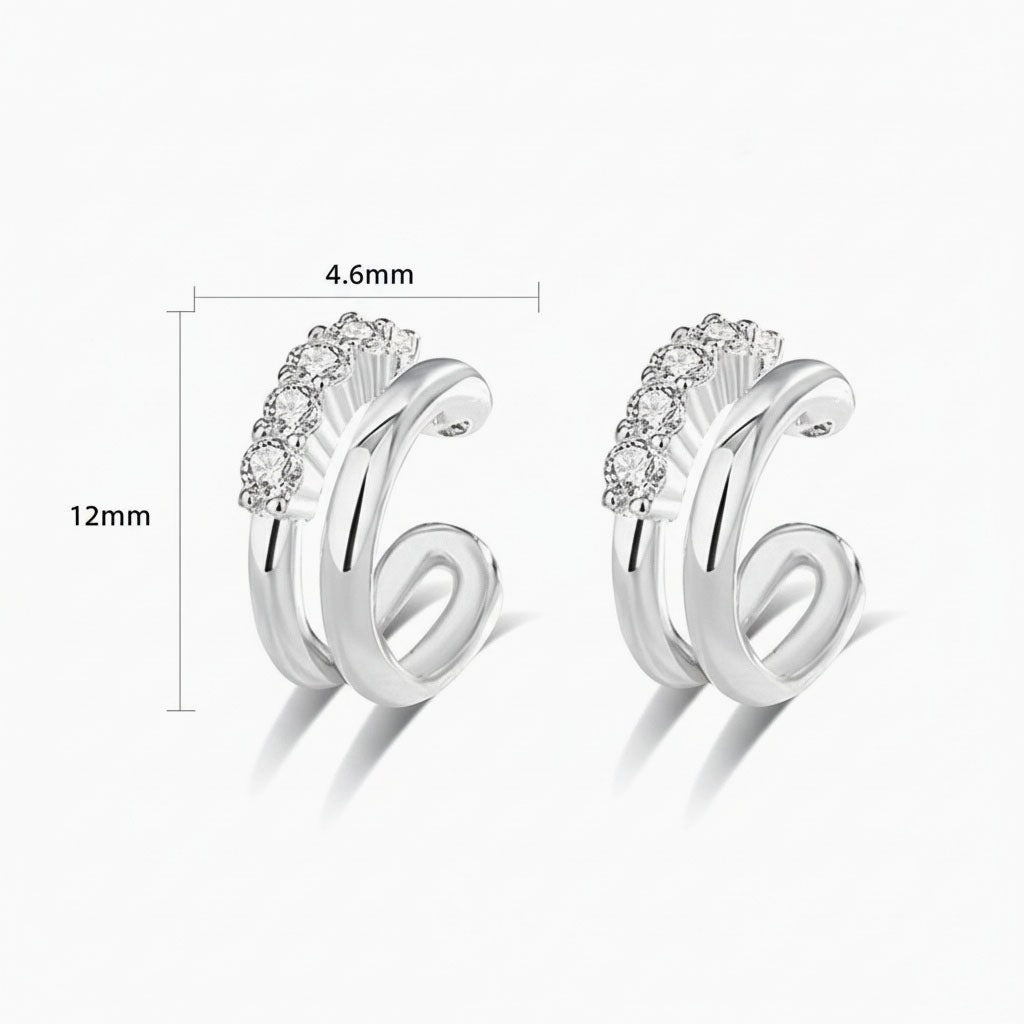 Diamond Double C Hoop Ear Cuff Earrings - Silver