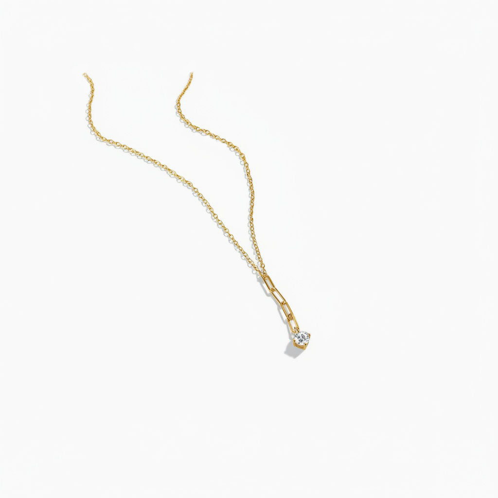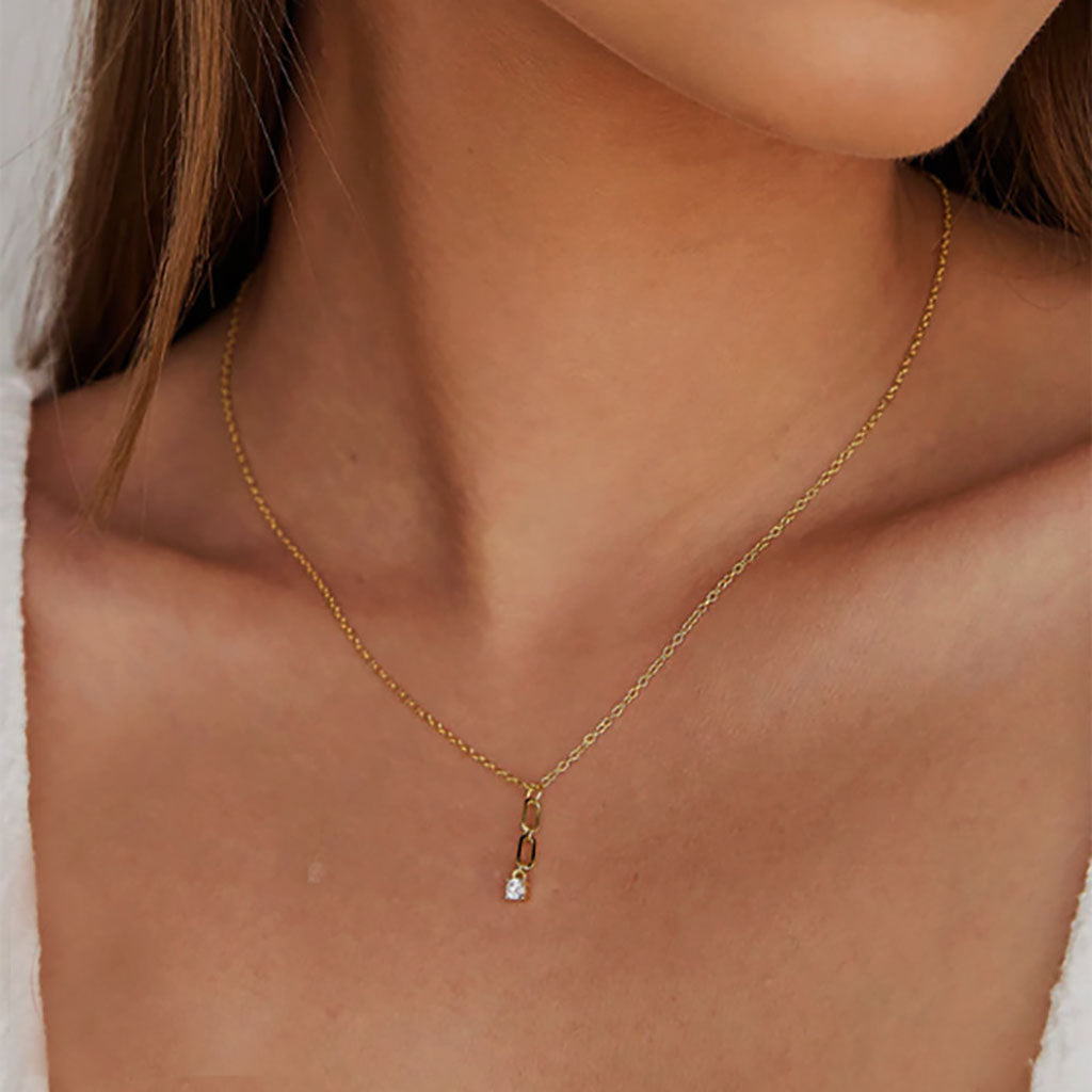 Golden paperclip drop. A refined cable chain necklace features a sleek paperclip drop strand ending with a sparkling mini stone. Modern, delicate, and effortlessly radiant, this gold necklace adds subtle elegance to everyday style and makes a thoughtful gift or a chic personal treat.