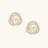 Blooming flower sparkles. A natural freshwater pearl is surrounded by intertwined gold curves and pavé crystal accents, forming a soft, layered silhouette inspired by rose in bloom. Wear these pearl studs solo for impact or pair them with your everyday earrings.