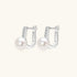 A refined go-to. This silver U-shaped huggie hoop gently features a natural freshwater pearl at the front. A slim row of clear crystals above the pearl, catching the light without feeling overdone. Polished yet effortless, this pearl piece is made to be worn on repeat.