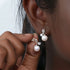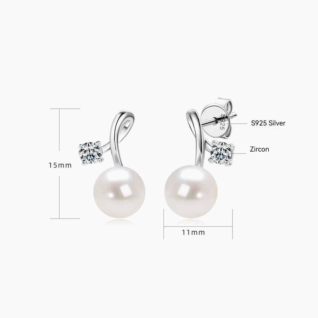 A luminous freshwater pearl meets a single sparkling stone. Sculpted silver lines curve gracefully around the pearl, accented with a brilliant crystal for refined contrast. Quietly luxurious yet easy to wear, these pearl earrings are perfect for everyday styling or subtle elevation.