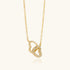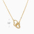 A pair of love. Two interlinked heart charms, one finished in smooth polished gold and the other outlined with pavé crystals, are set at the center of a slim gold chain. This double love necklace sits lightly at the neckline as a sweet expression of everyday luxury.