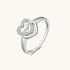 A promise shaped in shimmering silver. This interlocking heart ring pairs a pavé heart with a polished silver heart, creating a radiant union of sparkle and shine. Their intertwined design adds romantic meaning and timeless elegance, bringing a luminous touch of love to your finger with every gesture.