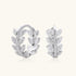 Botanical brilliance. These stunning silver hoops feature a delicate, crystal-encrusted olive leaf motif that wraps gracefully around the ear, offering a brilliant shimmer from every angle. Reward yourself with a versatile statement piece that symbolizes peace, victory, and the enduring beauty within you.