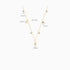 Written in the Stars. This delicate gold necklace features a celestial mix of star, moon, and evil eye charms, accented with subtle crystal drops along the chain. Each charm moves with you, creating a layered glow that feels light, symbolic, and effortlessly wearable every day.