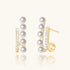 A little runway for pearls. A row of glowing glass pearls meets a shimmering diamond bar in polished gold, forming a sleek parallel design that hugs the ear. A curved gold loop behind the lobe completes the structure, turning these pearl and diamond stud earrings into your new everyday gold jewelry.