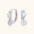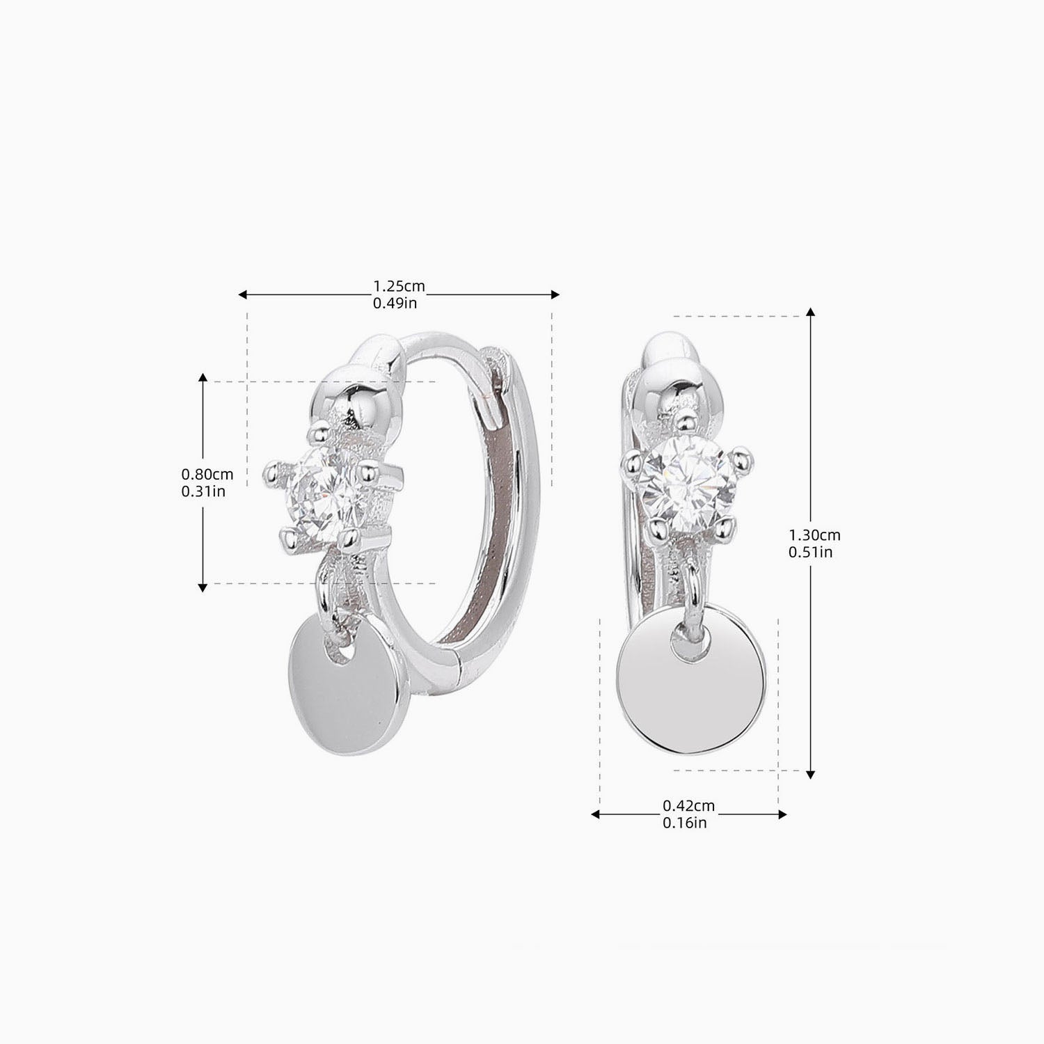 Luna sparkles, coin glows. A high shine silver huggie is set with a brilliant cut stone and finished with a sleek silver disc drop that moves like liquid metal. These earrings create fluid motion and an icy, sculptural glow. Strong enough to wear solo, refined enough to layer.