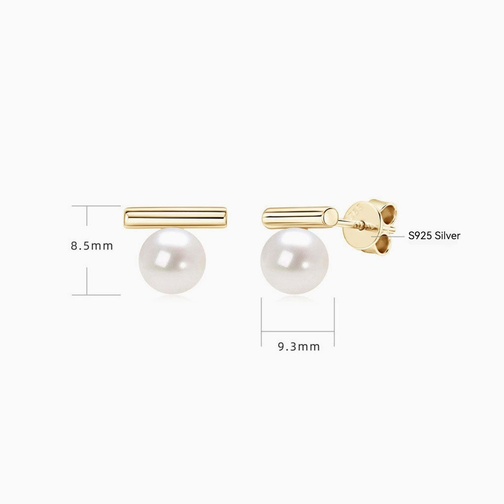 Freshwater Pearl Bar Stud Earrings - Gold