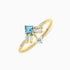 Two asscher cut stones meet four sleek baguette gems to form a bold geometric center, while three prong set mini stones on each side add a trail of sparkle. Set in warm gold, this statement ring glows with modern architecture and radiant elegance, creating a luminous focal point that elevates every look.