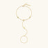 Wrap your hand in golden radiance. The delicate hand chain links wrist and finger with three sparkling gems, while a fine chain extends to a horizontal cross. Light catches every surface, creating a halo of luminous elegance. Ideal for solo or layered wear, blending divine symbolism with modern style.