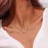 A sparkling talisman that moves with you. Five delicate evil eye motifs, each centered with a luminous round white stone, are linked to form a subtle smile shape along a fine gold chain. Designed to symbolize protection and balance, this necklace layers beautifully or shines solo.