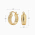 Sunlit confidence, captured in a single curve. These jewel-like huggie hoops are sculpted with a refined ribbed texture, adding depth and contemporary character to a classic silhouette in warm gold. Slip them on and let them become part of your story.