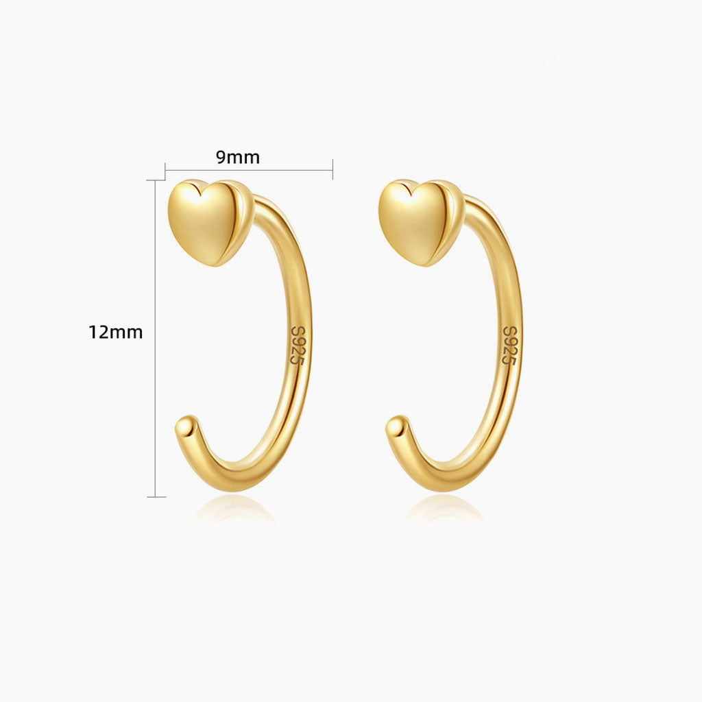 Heart C Hoop Ear Cuff Earrings - Gold