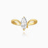 A luminous pear accent. A pear shaped stone glimmers at the center like a droplet of captured light while polished golden arcs sweep outward in an elegant embrace. The fluid curves frame the brilliance with graceful modern refinement creating a radiant statement ring for any moment.