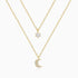 Moonlight meets a single spark of brilliance. This gold layered style pairs a longer necklace with a dangling pavé moon and a shorter strand with a dangling diamond solitaire, creating a warm celestial shimmer that feels dreamy, elegant, and perfect for everyday glow.