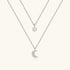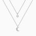 Moonlight drifts beside a quiet star gleam. This silver layered style features a longer necklace with a dangling pavé moon and a shorter one with a dangling diamond solitaire, offering cool luminous beauty that adds soft celestial charm to any look.