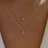 Mini Crescent Moon and Star Diamond Layered Necklace - Silver