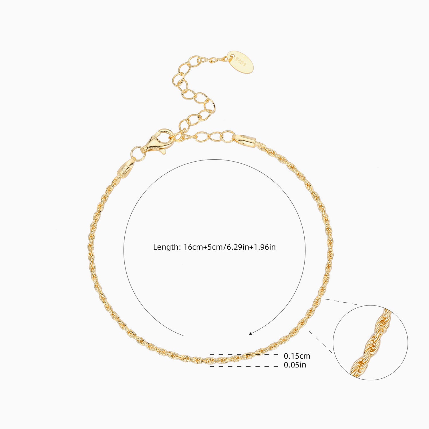 Golden light coils softly around the wrist. This 1.5mm gold rope chain bracelet blends classic design with modern simplicity and features an adjustable strand for a perfect fit. Sleek and luminous, it adds refined charm to everyday wear or layered styling.