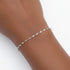 The shine comes first, then the shape. A mirror-finished chain catches light in clean reflections, while curved, lip links expand and narrow as they circle the wrist, creating a subtle, living rhythm. The polished silver bracelet carries light fluidly, precise in form and effortless to wear.