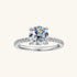 Sleek, luminous, and modern. A moissanite takes center stage, framed by hidden mini cubic zirconia nestled between the stone and half-pavé band. The sleek silver enhances clarity and light, creating a luminous ring offered in 0.8ct or 2ct options for self-gifting, promises, or weddings.