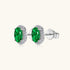 Oval Emerald Diamond Halo Stud Earrings - Silver