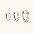 Pave 3 Piece Diamond Huggie Hoop Earring Bundles - Silver