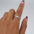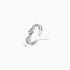 A shimmering twist of luxe. This band ring in polished silver wraps the finger with delicate arcs, each encrusted with sparkling stones that catch the light with every movement. Modern yet timeless, this adjustable open design is perfect to wear alone or layered for a refined, luminous touch.