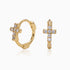 Pave Diamond Cross Huggie Hoop Earrings - Gold
