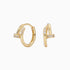Nail-inspired hoops gleam with warm radiance. Polished gold elevates the sculptural silhouette, while pavé accents trace the curve with refined sparkle. Lightweight and smooth against the ear, these huggies deliver effortless luxury—perfect for solo wear or layered styling.