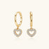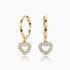 Pave Heart Drop Huggie Hoop Earrings - Gold