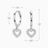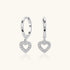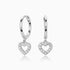 Pave Heart Drop Huggie Hoop Earrings - Silver